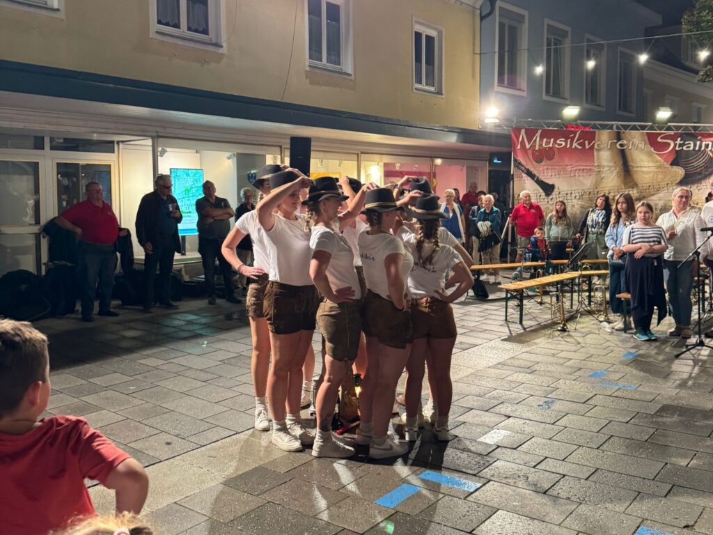 Unser erster Auftritt im Sommer: Das Dämmerschoppen der Marktmusikkapelle Stainz am 25. Juli. Nachdem wir bereits 2023 auftreten sollten, und der Dämmerschoppen damals dem Wetter zum Opfer viel, stand der Wettergott diesmal auf unserer Seite und es regnete erst nach unserem Auftritt.